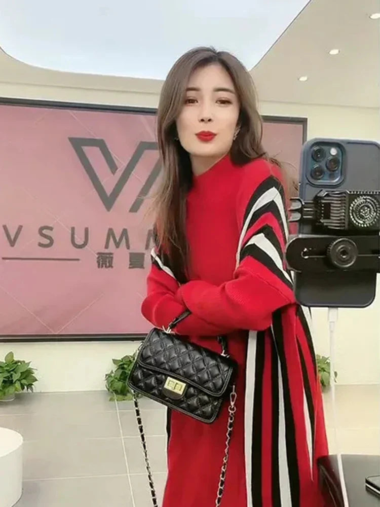 Soraya | Elegante Gebreide Jurk met Halve Col
