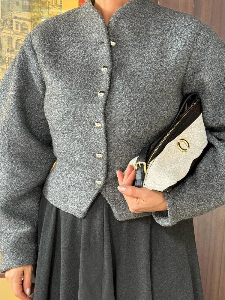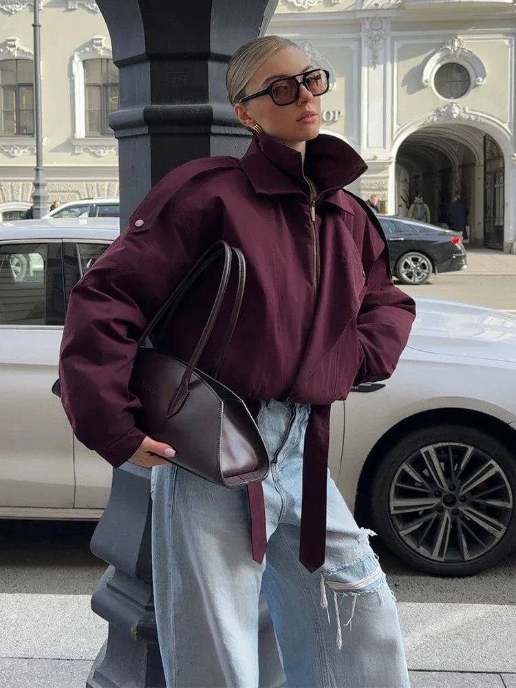Het Matilda bomberjack biedt een losse, comfortabele pasvorm met een verfijnde opstaande kraag — perfect voor dames die stijl willen combineren met dagelijkse functionaliteit.